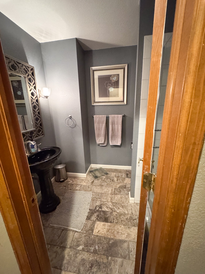 Start with what is already done. Furnace and 2 newer water heaters. Roof can get 5 yr cert. Kitchen is done, already updated and slab granite. Bathrooms are mostly fine except primary. Just plan on vanity tops, replacing a black pedestal sink with white, minimal updates. The hardwood flooring is in good shape, plan to replace other flooring.