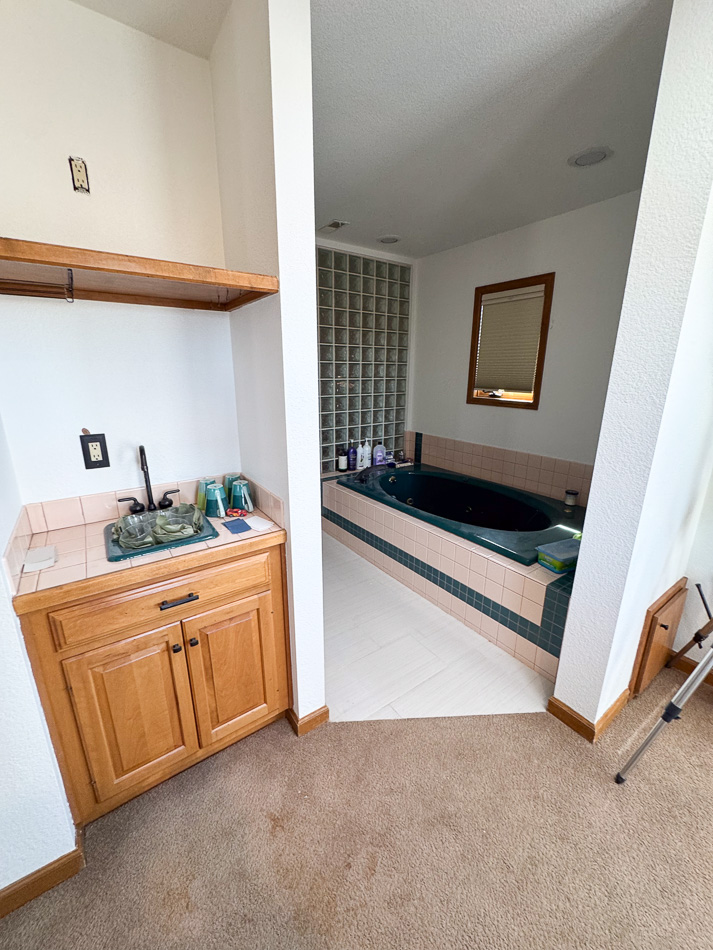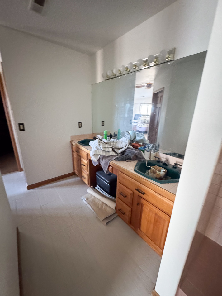 Main work is in primary, remodel all and repurpose vanity with new top.