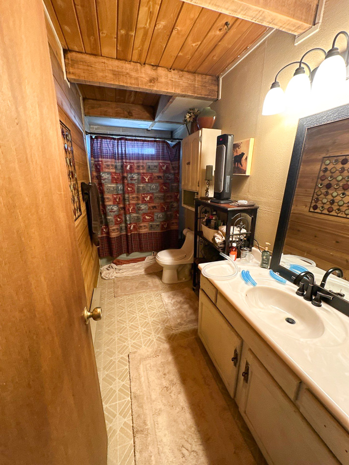 Just sold 2/26 $859k, 2126sf 3 bed.3 bath on half acre lot, subject property has 5 acres. This comp has partial remodel and still has the older oak cabinets, vanities and dated tile including carpeted primary bathroom which just isn't great.